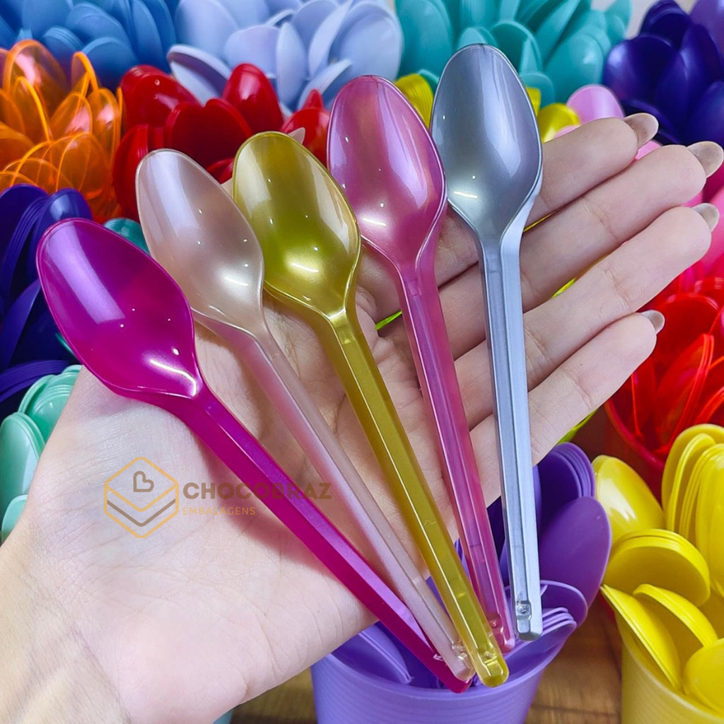 Pacote contem 50~250 unidades Os talheres da Bello Festas trazem elegância e diversão para você. São diversas cores para a sua festa ficar ainda mais colorida! Composição: Poliestireno virgem e pigmentos de alta pureza conforme resolução 105/99 da AVISA Produto não perecível - ATÓXICO