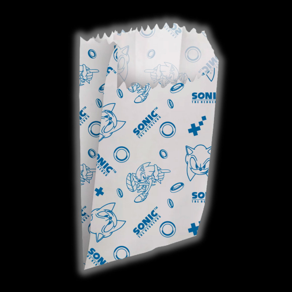 SACO DE PIPOCA OU HOT DOG , SONIC, PRODUTO LICENCIADO.. MATERIAL : PAPEL FABRICANTE : REGINA