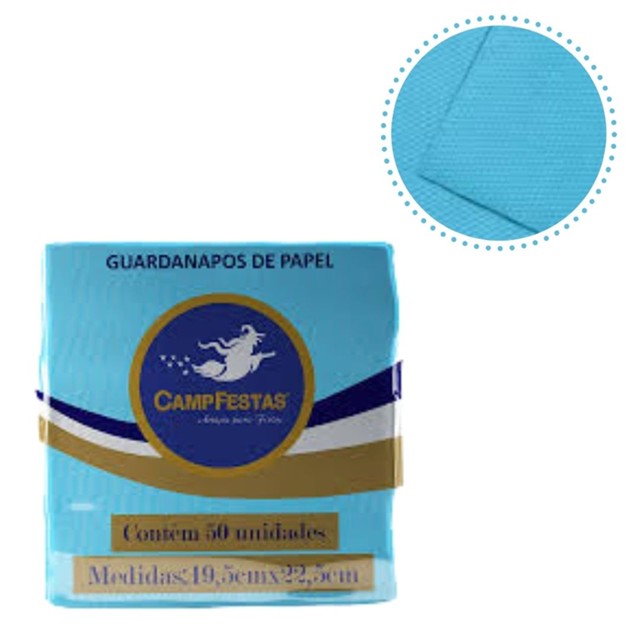 | 50~300 GUARDANAPOS AZUL CLARO FESTA 19,5 X 22,5 CAMPFESTA este produto | R$ 9,85 | — | 4.4/5 | 11 |