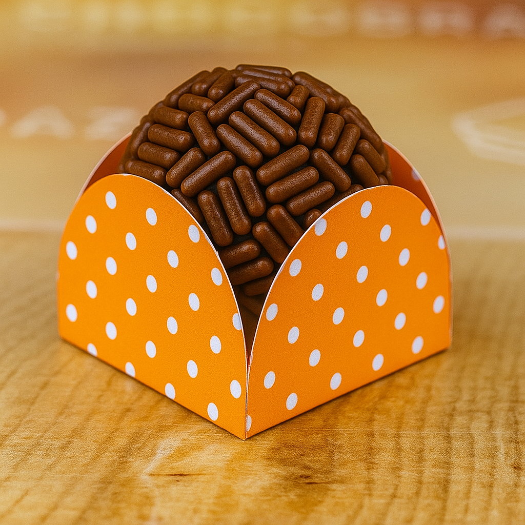 KIT 50 A 450 Forminhas para Doces 4 Pétalas Laranja poá branco - NC Toys As Forminhas para Doces 4 Pétalas da NC Toys são fáceis de montar e utilizadas para doces. Caracteristicas: Papel offset 180g Cor/Tema: Laranja poá branco Pode ser usada dos dois lados Medida: - Base de 3,5 centímetros - Largura 3,5 centímetros - Altura 2,6 centímetros Tamanho padrão para docinhos de festa.