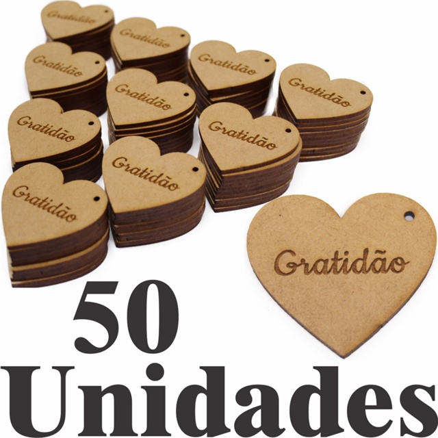 50 Apliques Coração Tag 5x4,4cm Mdf Cru Artesanato Gratidão