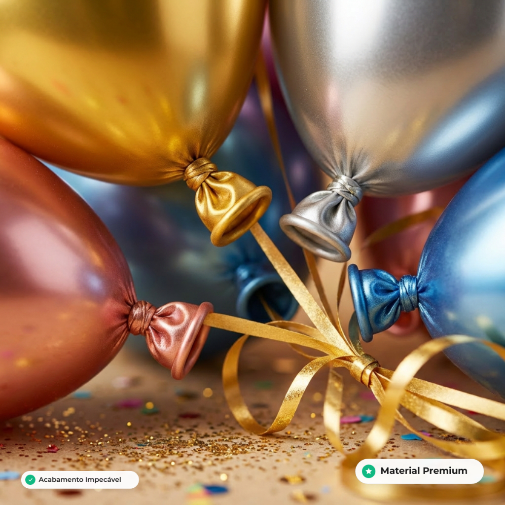 Deixe sua festa com acabamento impecável usando nossos balões de látex 10 polegadas (aprox. 25,5 cm). Ideais para decorações modernas e elegantes, são perfeitos para montar arcos, painéis, arranjos, centros de mesa e kits de festa, garantindo um visual mais “profissional” nas fotos. 🎨 Cores disponíveis (cor única por variação) Dourado • Champanhe • Rosé/Rosa • Vermelho • Azul • Verde • Roxo • Pink ➡️ Atenção: ao escolher a variação, você recebe todas as unidades na mesma cor selecionada. ✅ Diferenciais Tamanho versátil (10”): ótimo para compor camadas e dar volume Visual premium: acabamento bonito para decoração e fotografia Prático: inflagem rápida com bomba manual ou elétrica Ideal para uso profissional ou doméstico 📏 Especificações Tamanho: 10” (aprox. 25,5 cm) Material: Látex Estilo: Liso (sem estampa) Indicado para: Aniversário, Casamento, Chá Revelação, Festas e Eventos 📦 Variações de quantidade (selecione no anúncio) 10 • 25 • 50 • 100 unidades Conteúdo da embalagem 01 pacote com 10/25/50/100 unidades Todas as unidades na cor escolhida (cor única por variação) 📝 Observações Medida aproximada: pode variar levemente conforme a calibragem da inflagem. Pode haver pequena variação de tonalidade conforme iluminação e lote. Recomendação: utilize bomba para melhor acabamento e preservação do balão.