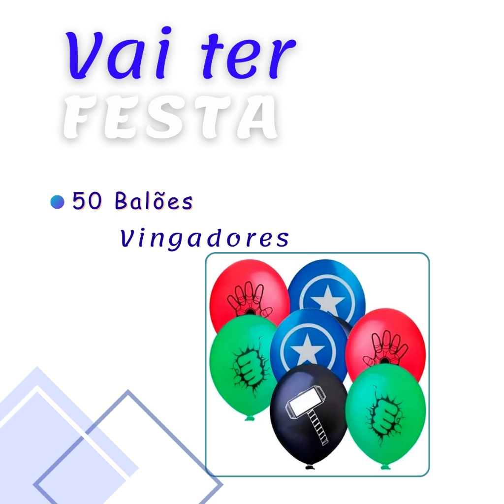 | 50 Balões Vingadores 11 Polegadas Festa Infantil este produto | R$ 38,31 | 22% | 4.9/5 | 26 |