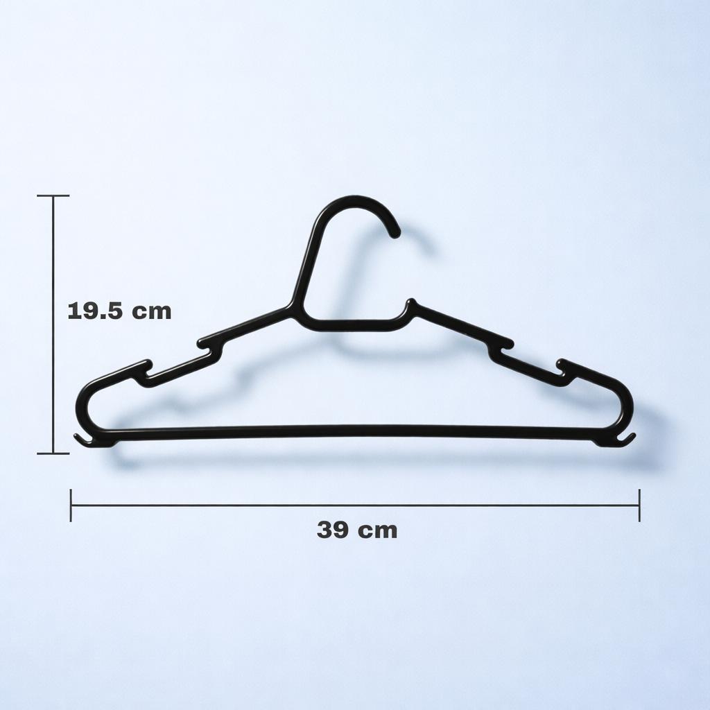 Cabide preto com preço de atacado. KIT COM 50 UNIDADES Organize seu guarda-roupa com praticidade e elegância! Este cabide é ideal para quem busca otimizar espaço e manter as roupas sempre bem cuidadas. - Design moderno e funcional - Material resistente e durável - Superfície antideslizante - Ganchos laterais práticos Uso adulto Material: Plástico PP TAMANHO COMPRIMENTO 39 CM ALTURA 19,5 CM