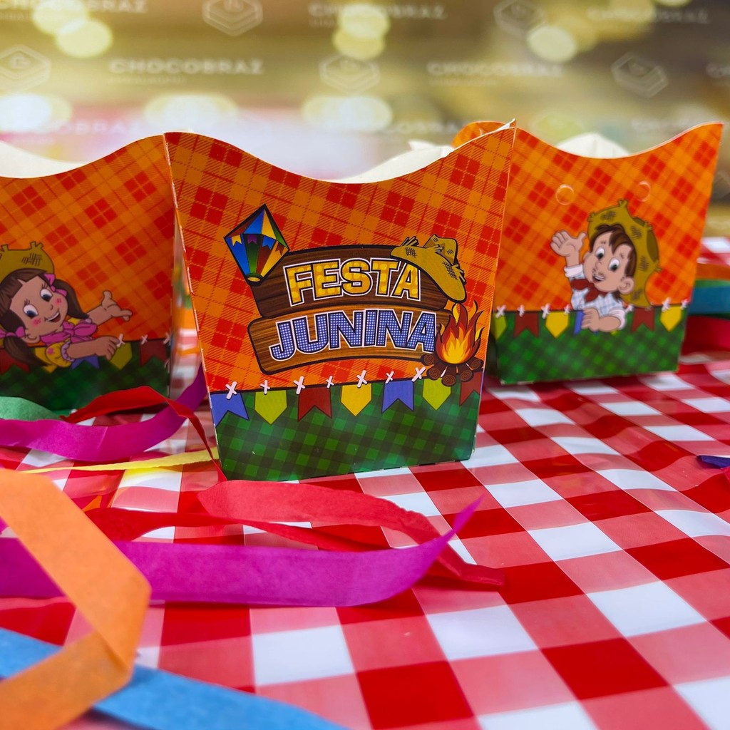 CACHEPÔ 9x9x7 Dica: utilize para personalizar os centro das mesas dos convidados ou para servir docinhos e salgadinhos!. Tema/Cor: Festa Junina Material Papel cartonado personalizado Tamanho 9 x 9x7 cm Embalagem com 10 unidades