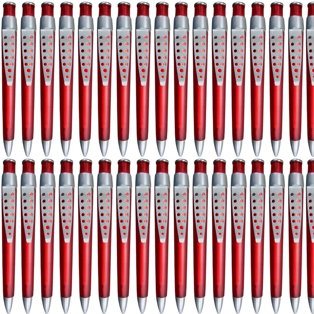 50 Canetas Vermelha Com Tubo Transparente Click Tinta Azul