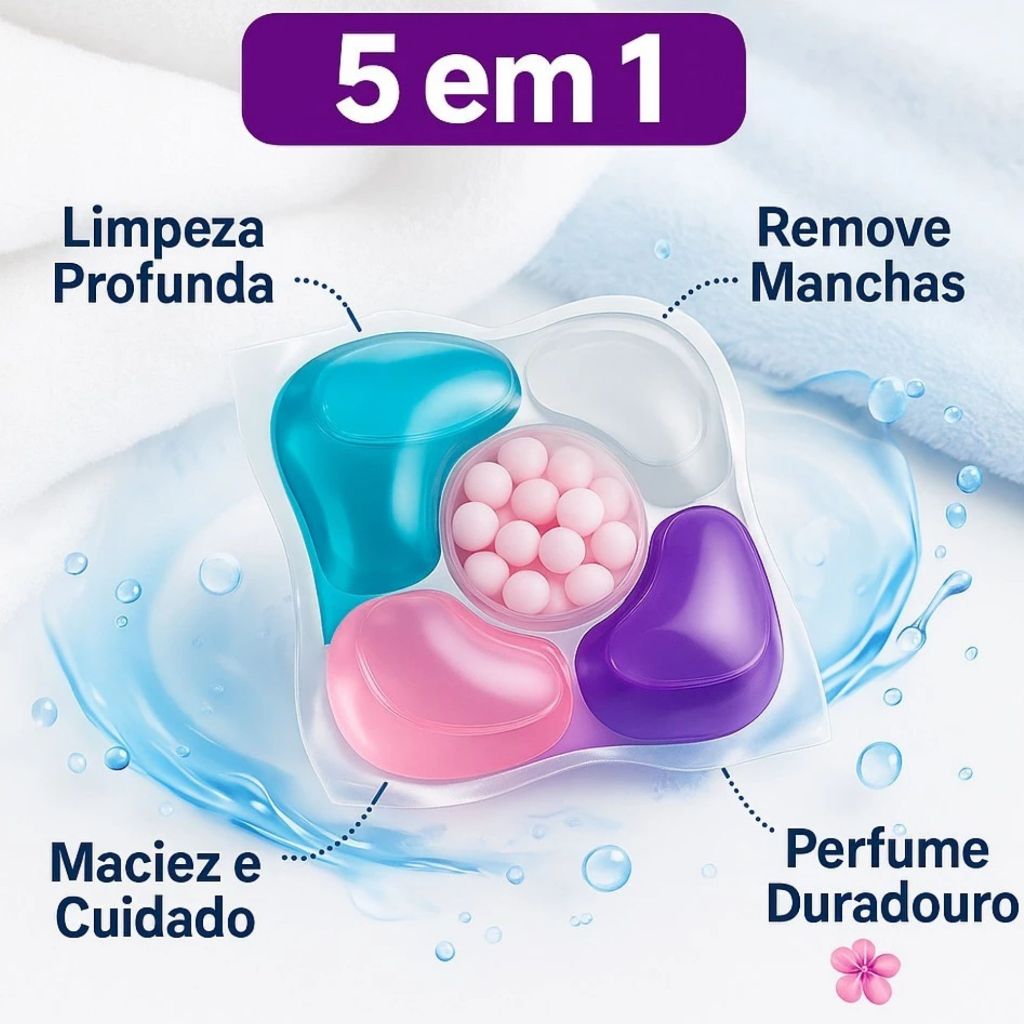 50 Capsulas 5 em 1 Lavagem Roupas Remove Manchas Protege Cores Dissolve Na Agua Fria QUEIMA ESTOQUE