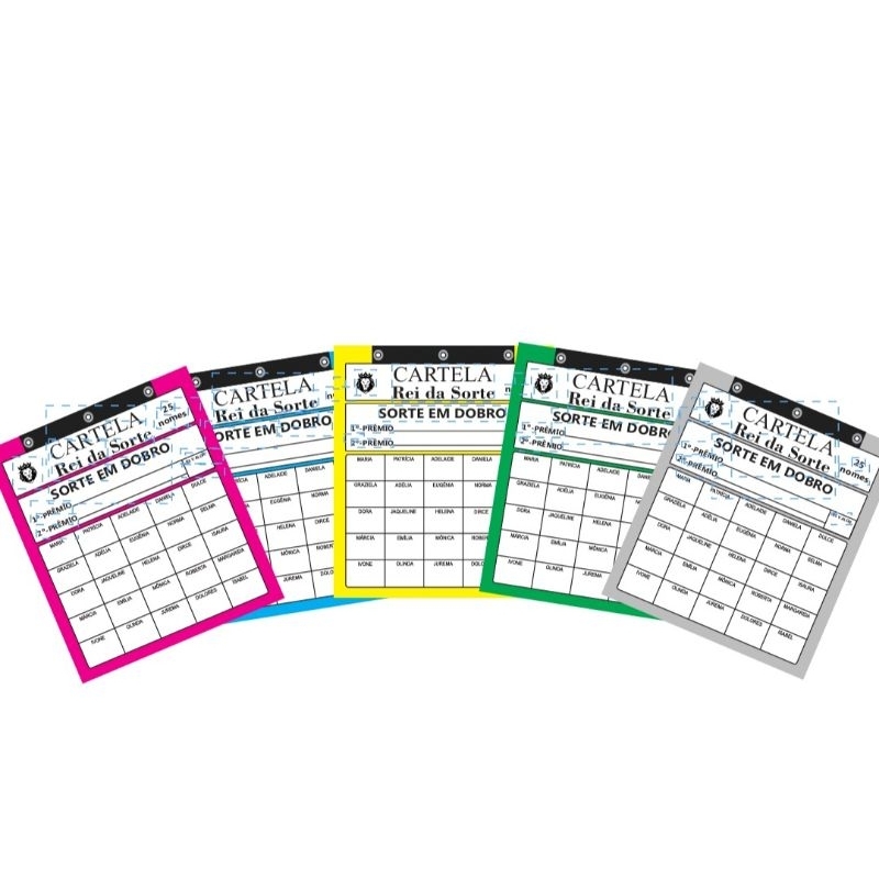 50 Cartelas de Rifa 25 Nomes 2 Ganhadores (5 Cores) REI