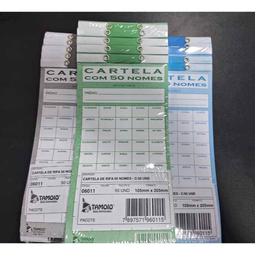 50 CARTELAS DE RIFA DE 50 NOMES DE MULHER (Modelo Antigo)