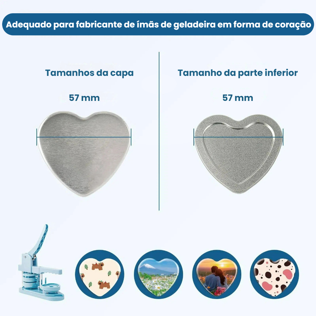 50 conjuntos de materiais para fabricar ímãs em forma de coração de 57 mm, máquina para fabricar crachás Mecolour