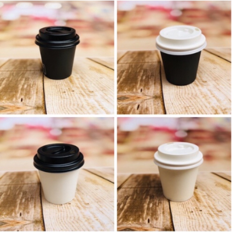 50 copo 110 ml de papel 100 % Biodegradável Cor: preto ou branco tampa opcional. ideal para cafés.