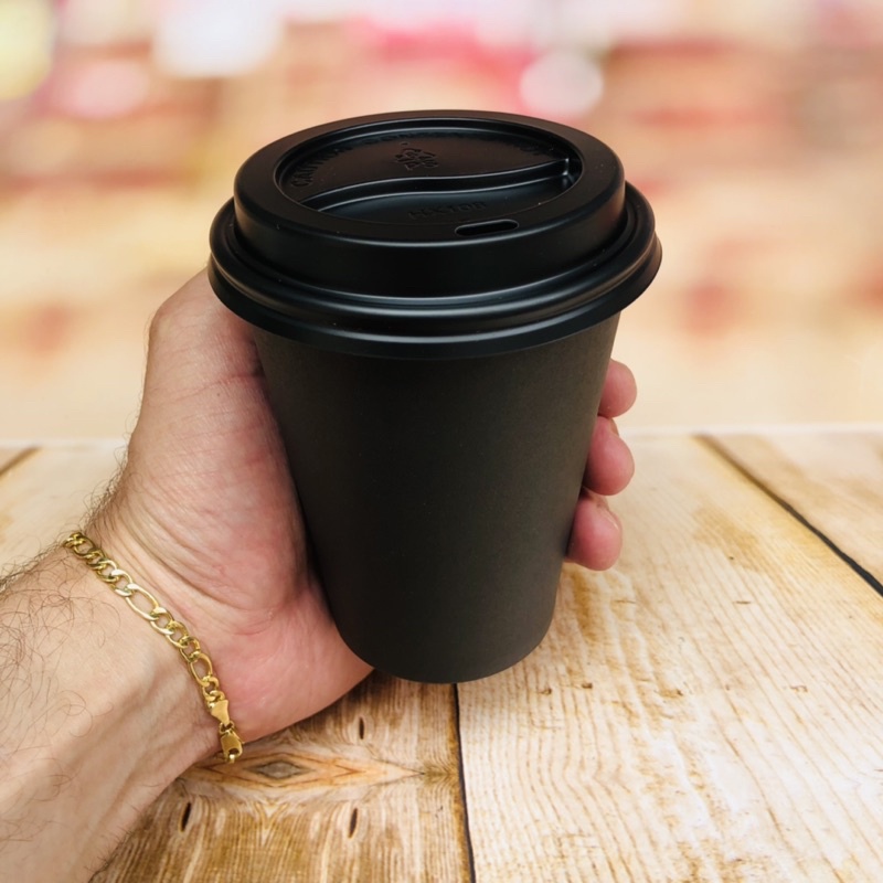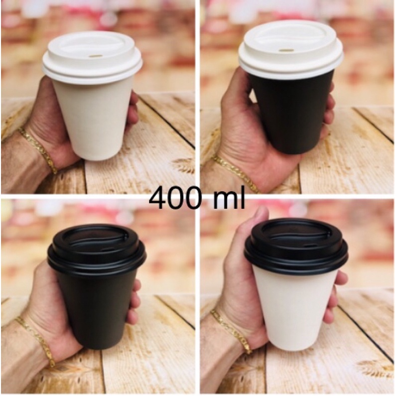 50 copo 400 ml de papel Biodegradável preto ou branco tampa opcional