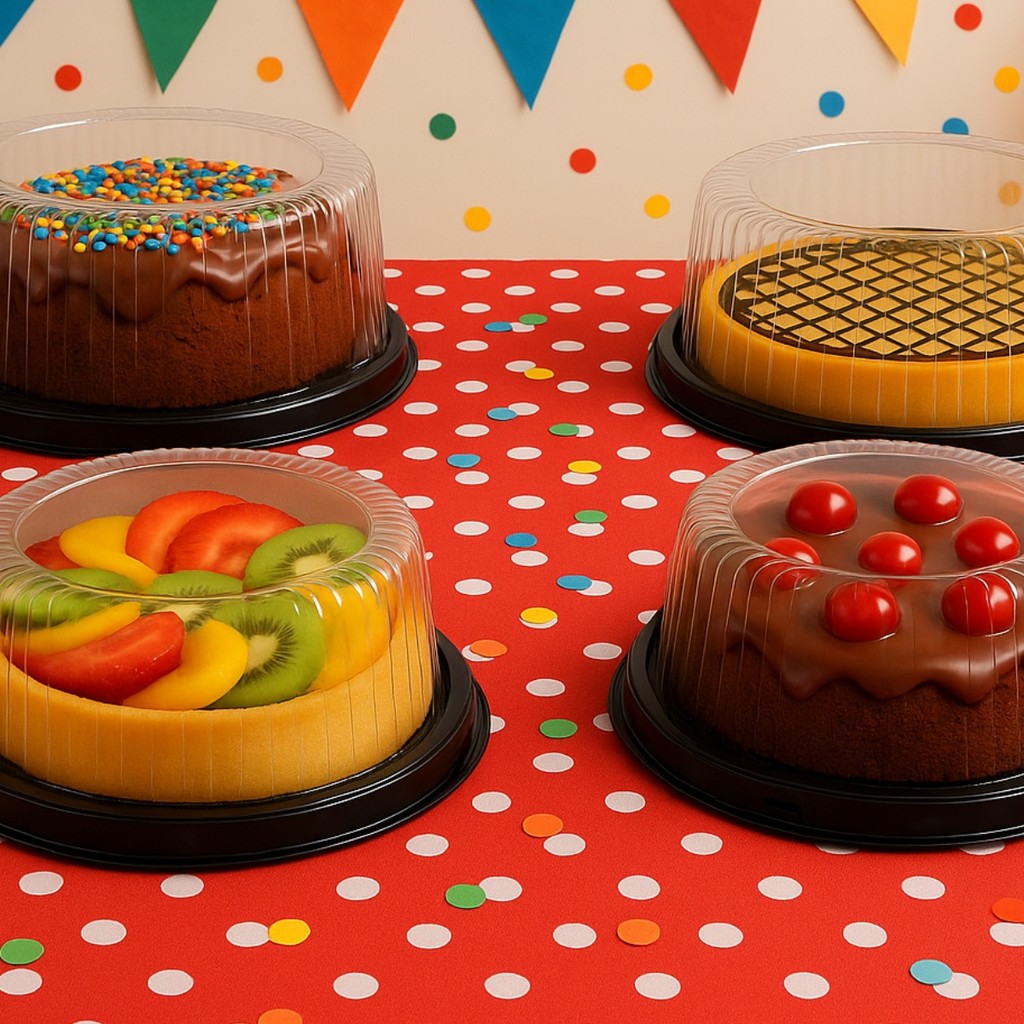 EMBALAGENS PARA BOLOS E TORTAS 32M PRETA 750G CHOCOBRAZ Produto: Bolo, Bolo Confeitado e Tortas Quantidade: unidades Material: Pet Formato: Redondo Capacidade: 750g Cor: transparente Dimensões Int: Ø180 x 93 mm Ext: Ø215 x 97 mm