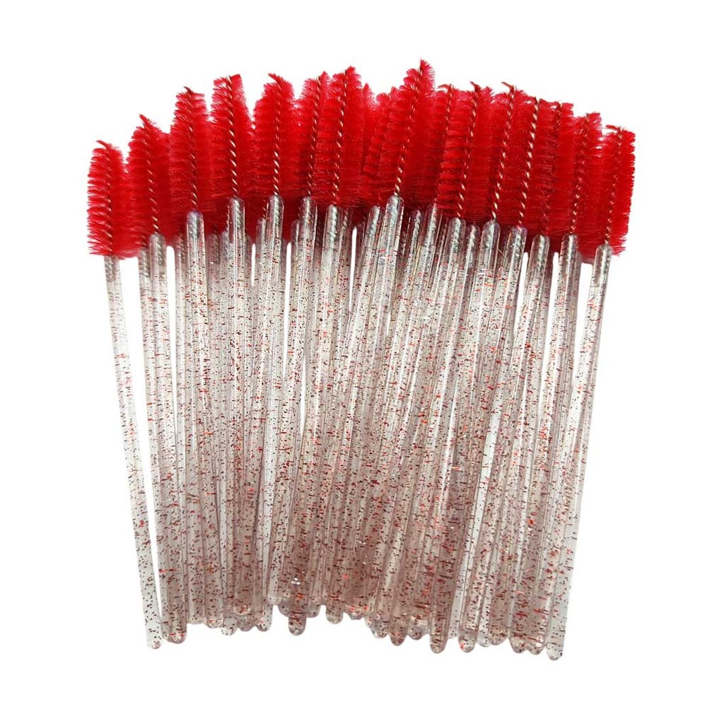 50 Escovinha de Cílios descartável com Glitter Vermelha