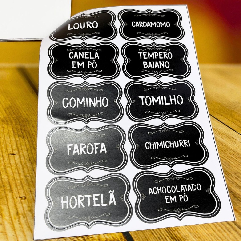 *NÃO ACOMPANHA O PORTA TEMPERO* Mantenha sua despensa organizada e charmosa com as Etiquetas Adesivas de Mantimentos da Marca Adesiva. Produzidas em vinil de alta qualidade, são resistentes à água, óleo e ao desgaste, garantindo durabilidade mesmo com o uso diário. Características: Kit com 50 etiquetas pré-impressas Material: Vinil adesivo resistente e lavável Formato elegante com bordas decoradas e fundo preto estilo lousa Escrita em branco, com alta legibilidade Ideal para vidros, potes plásticos e outros recipientes de mantimentos Fácil aplicação e ótima fixação Resistentes à umidade e limpeza leve Contém nomes variados como: Feijão, Sal, Macarrão, Orégano, Bicarbonato, Curry, Farinha de Rosca, Farinha de Trigo, Lemon Pepper, Batata Palha e muito mais! – Organize sua cozinha com estilo e praticidade. Marca Adesiva