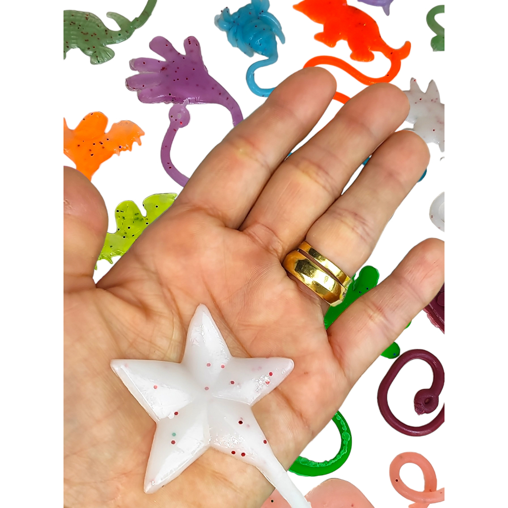 50 Geleca Gruda Pega Tazo Estica Puxa Infantil Prenda Lembrancinha Para Kit Festa Brinquedo