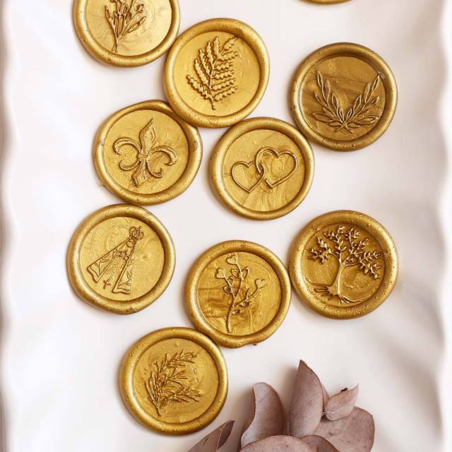 50 Lacre de cera Dourado Pronta Entrega c/ dupla face - escolha o desenho