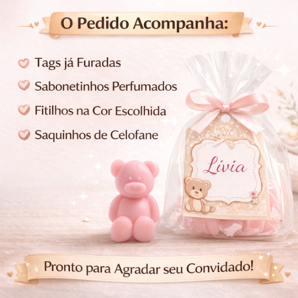 50 Lembrancinhas Sabonetes Perfumados Saida de Maternidade ursinho (SABONETES)
