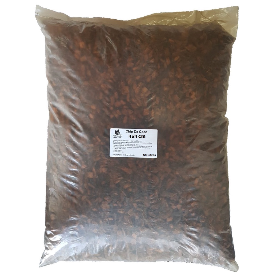 Anúncio referente a 50 Litros de Chip de Côco Lavado. Aproximadamente de 3 a 4kg Escolha o Tamanho ao comprar: Cubos de 2X2 cm ou 1x1 Cm. Produto em forma de cubos de 2x2 Cm ou 1x1 Cm, utilizado no plantio de orquídeas no estágio final. Produto com EC menor que 1 e pH de 5,5 a 6,5. É hidrofílico, retendo de quatro a cinco vezes o seu peso em água e apresenta alta porosidade, cerca de 90%. Favorece melhores características físicas e biológicas do meio de cultivo, constituindo um excelente estimulador de enraizamento de plantas. Em caso de duvida estamos a disposição.