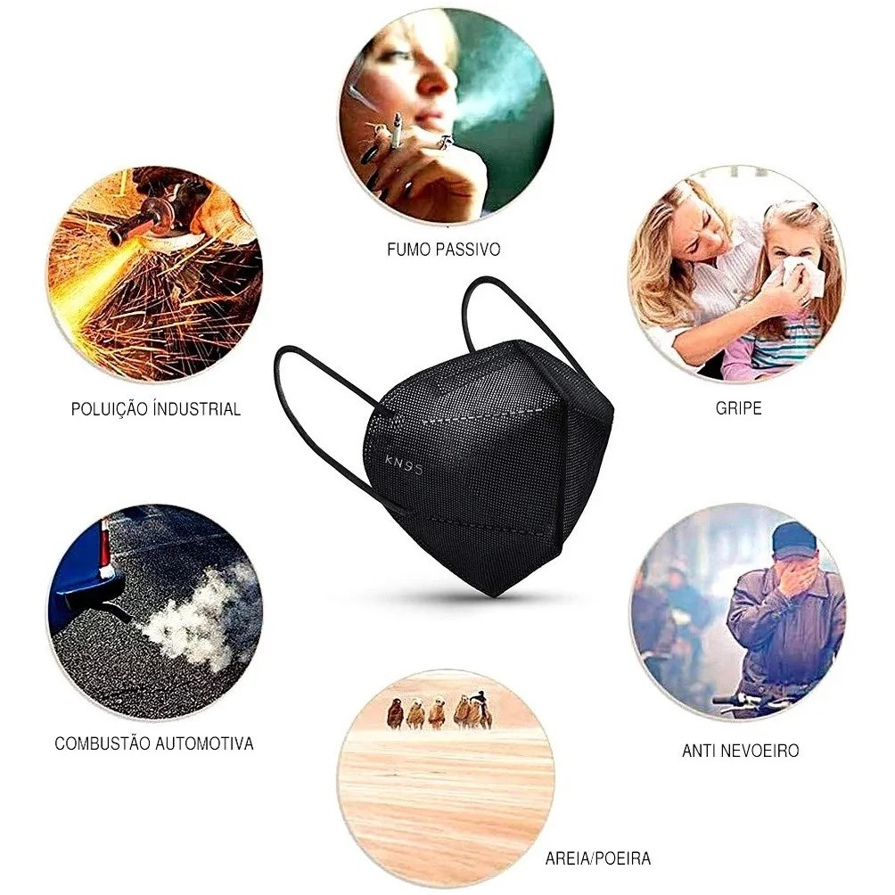 50 Máscara KN95 Preta PFF2 Proteção 5 Camadas Wwdoll