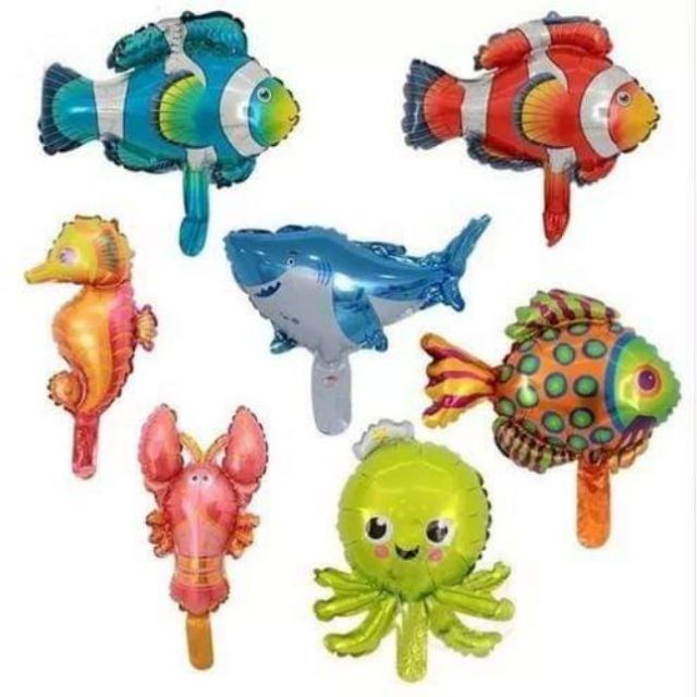 50 Mini Balão Fundo Mar Metalizado 32cm Festa Oceano Peixes C90411