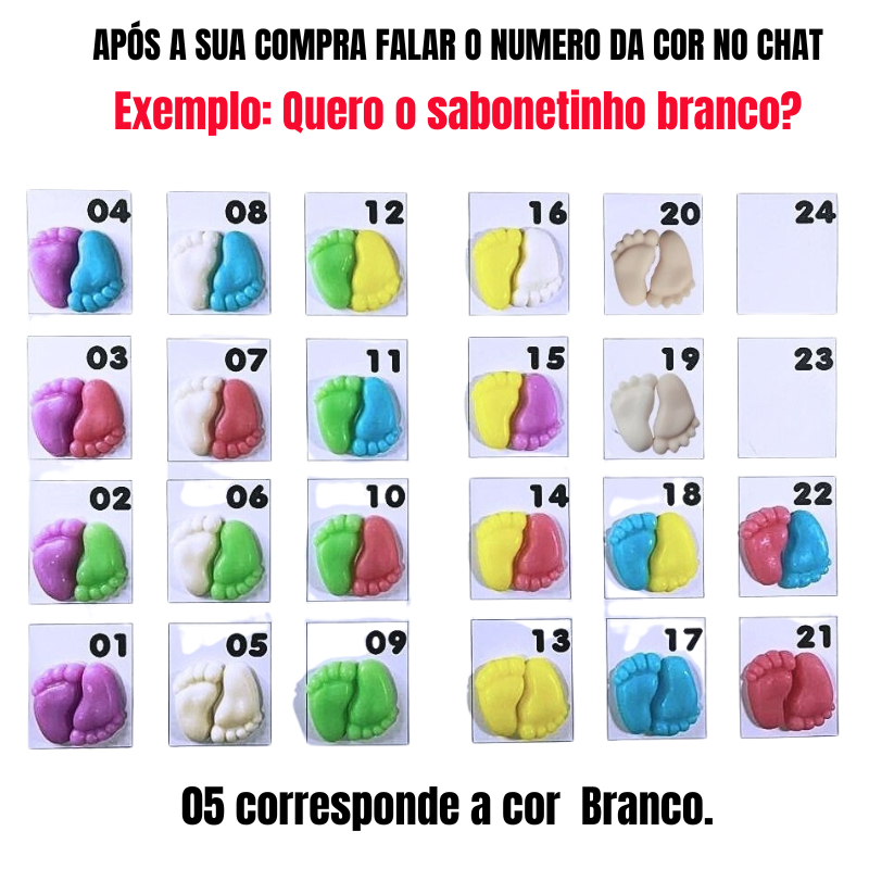 50 Mini Pezinhos Lembrancinha - Chá de Mêsversário (25 Pares) Sabonetes Perfumados