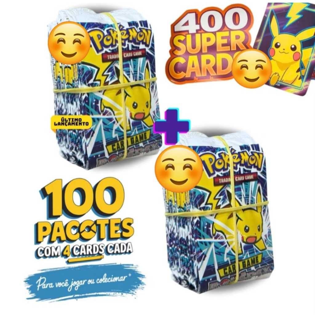 Será Enviado um pacote com 25 ou 50 pacotes do Pokemon ESCOLHA O SEU PACK! Contém 4 cards cada pacote Pokemon Com duas formas de brincar com elas, sendo: ️ 1° - Batalha: Cada card vem com sua especificação, sendo ataque e defesa, assim as crianças vão duelando com suas cards mais fortes. ️ 2° - Bater card (Bafo), nessa as crianças apostam suas cards e batem bafo para ganhar as cards do coleguinha. Dimensão do card: Altura: 7,5 cm Comprimento: 5 cm ATENÇÃO! Os cards são temáticos dos personagens do desenho pokémon, NÃO SÃO DA MARCA COPAG, nem tem ligação com nenhuma marca. O verso dos cards variam de acordo com o lote mensal, antes de comprar verifique no chat qual virá. ⌚ Enviamos após o pagamento identificado em até 24/48h.