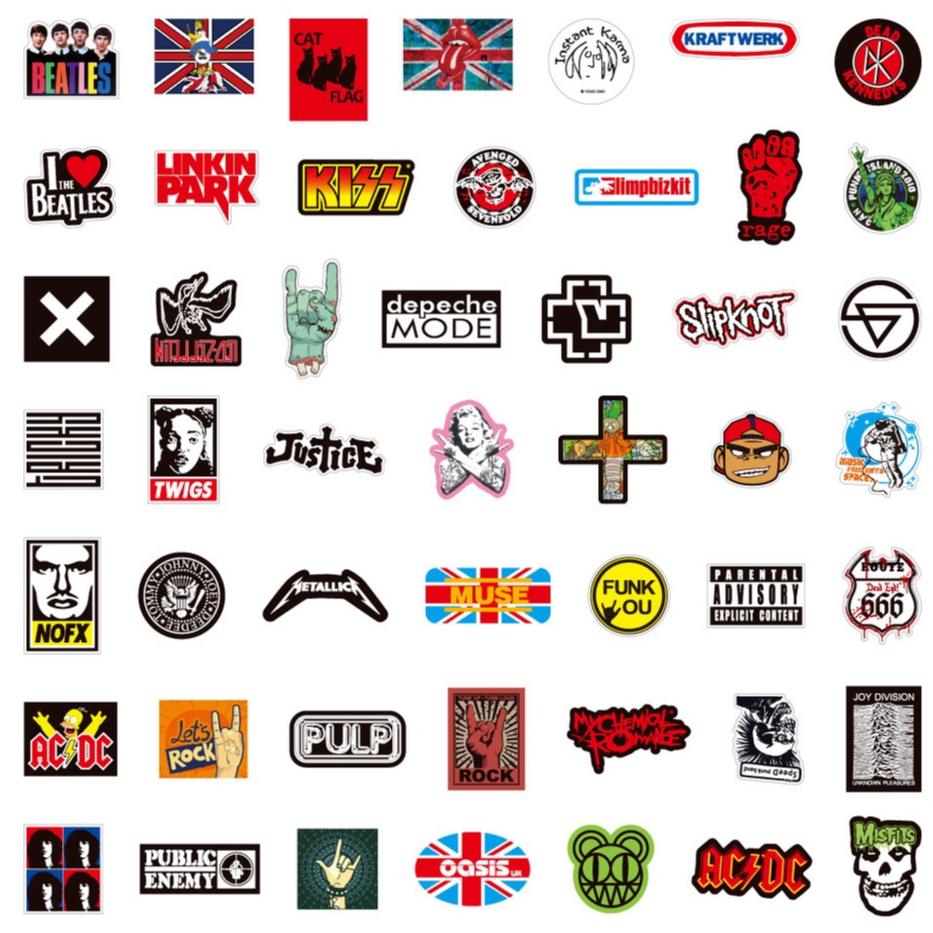 50 Peças Adesivos Punk Rock Band – Decalques Temáticos Musicais Para Laptop , Guitarra , Capacete E Telefone