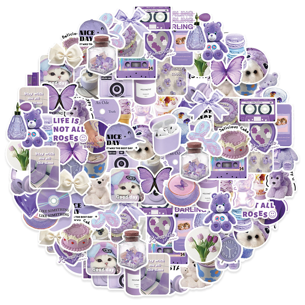 50 Peças Adesivos Roxos Fofos De Desenho Animado Em Caixa De PVC Para DIY , Álbuns De Fotos , Diários , Copos , Laptops