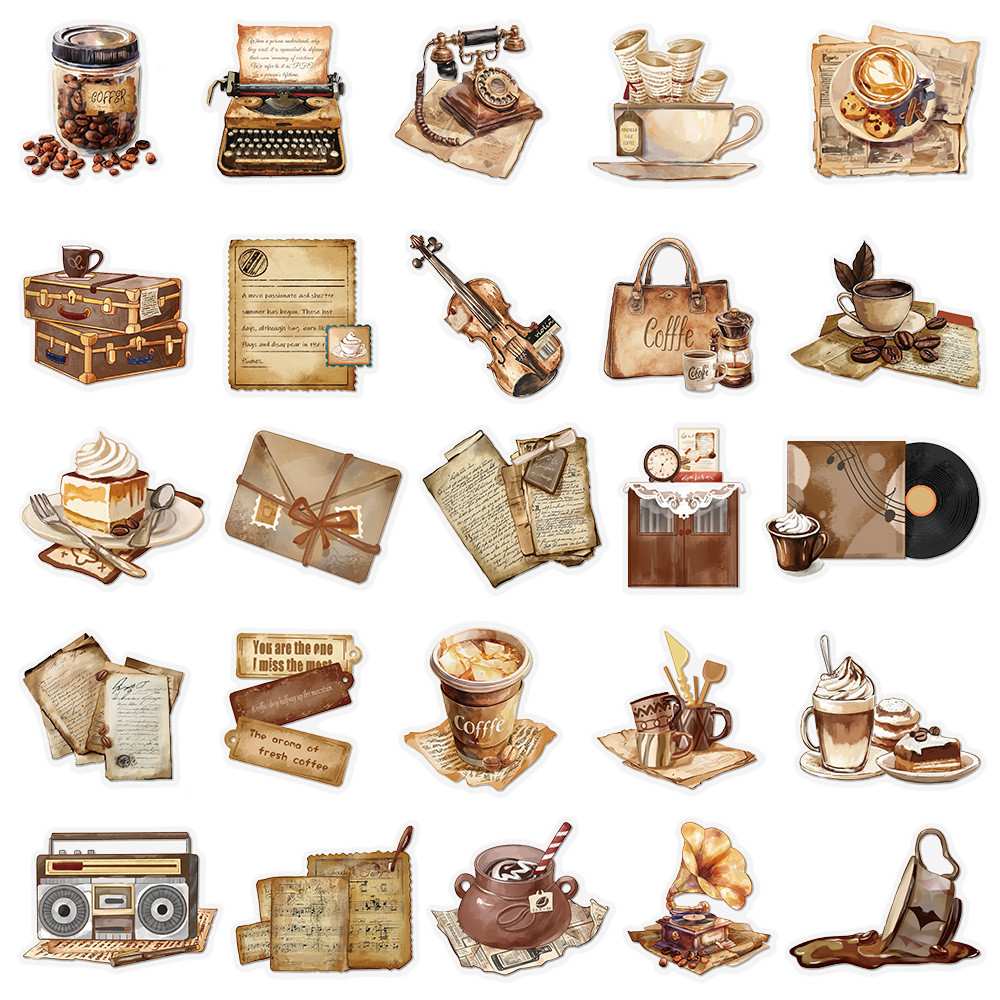 50 Peças Adesivos Transpanrent De Plástico Vintage Café PET