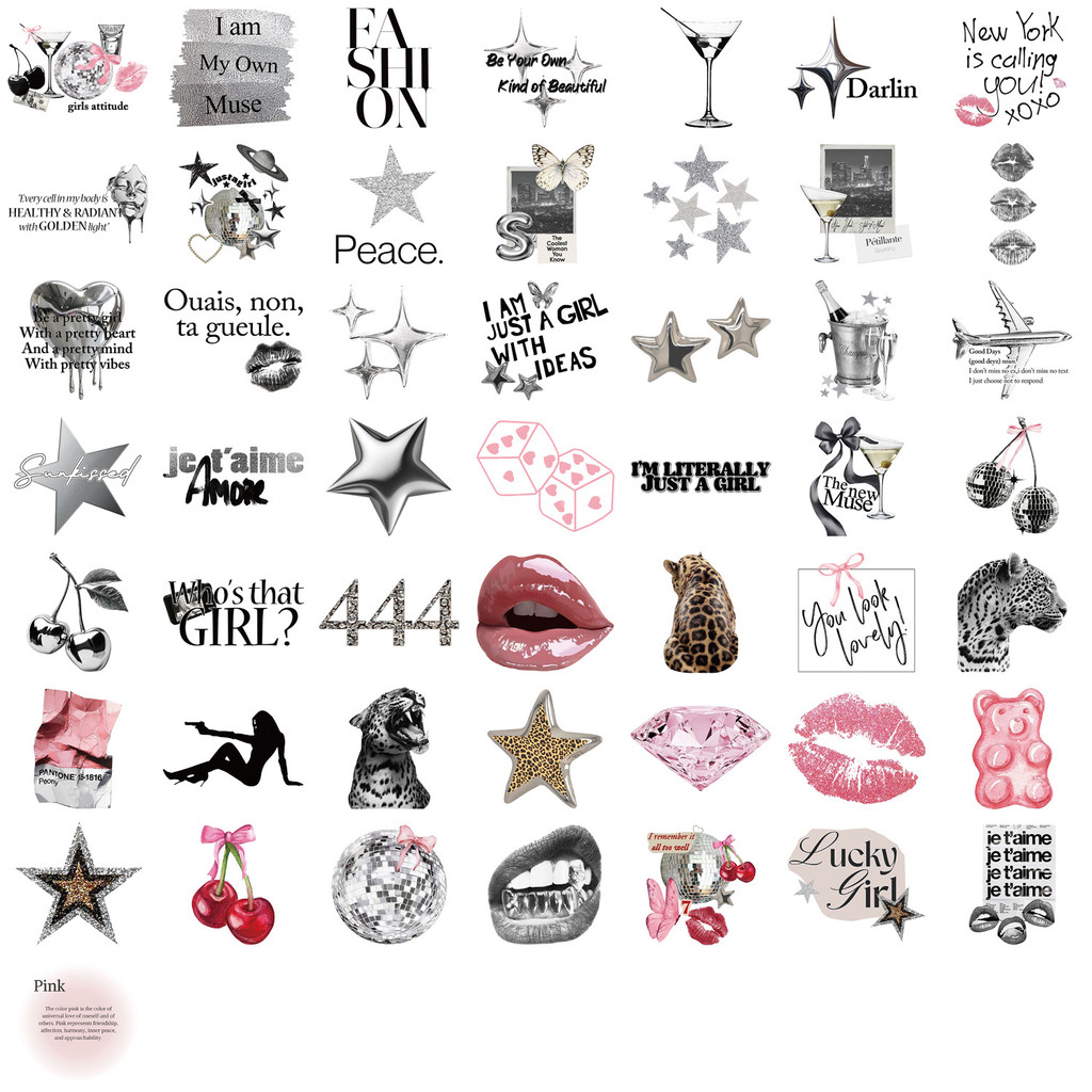 50 Peças Adesivos Vintage Prateados Da Série Lucky Girl-Decalques À Prova D'água De PVC Para Skate E Capa De Telefone De