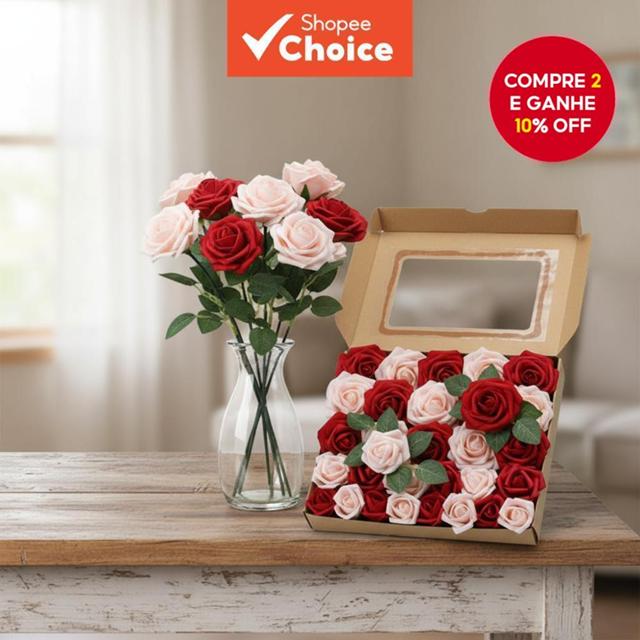 50 Peças de Rosas Grandes Decorativas artificiais aparece na subcategoria Flores (de Casa e Construção) na Shopee Brasil por R$ 15,41 (30% de desconto sobre o preço original de R$ 22,01). Avaliado em 5.0/5 pelos compradores e 146 unidades vendidas, este produto se destaca pelo excelente custo-benefício.