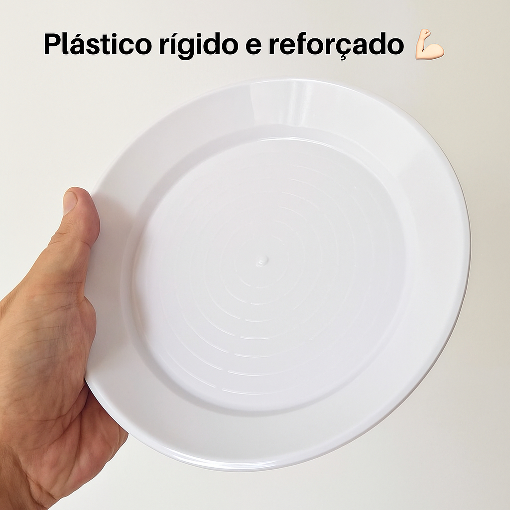 50 Prato Tipo Acrilico Plastico Rigido Refeição 21cm Reutilizavel