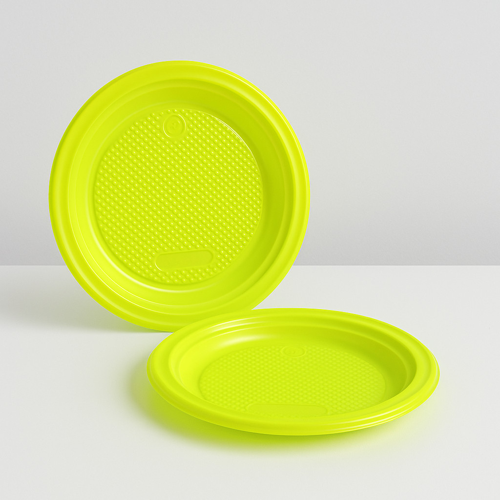 Kit pratinhos plásticos econômicos neon da marca Plastik, com 15cm de diâmetro. Perfeitos para festas e eventos, são leves, práticos e trazem um toque vibrante à sua decoração, garantindo economia sem abrir mão da funcionalidade.