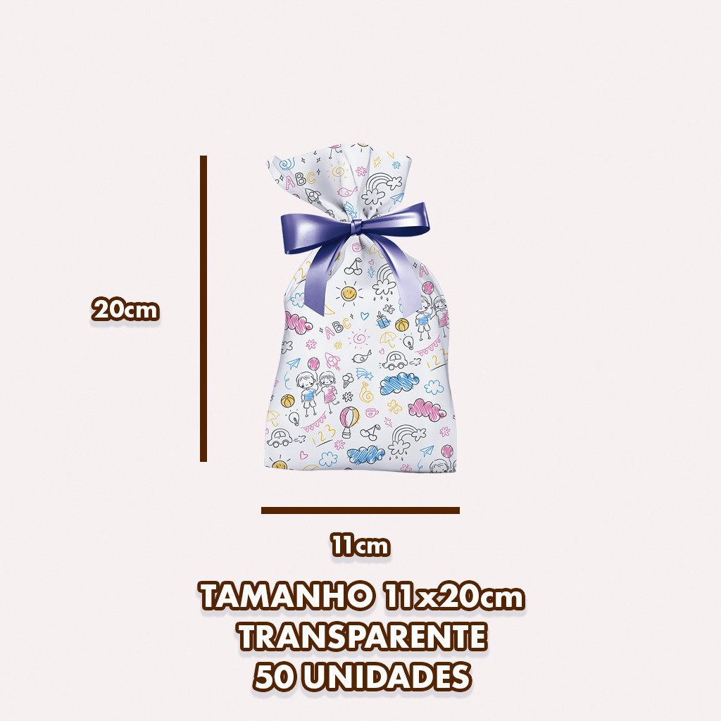 50 Saco Decorado Transparente 11x20