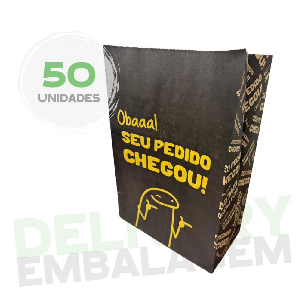50 Saco Kraft 17x10x24 Delivery Oba Seu Pedido Chegou Embalagem Lanche Fast Food