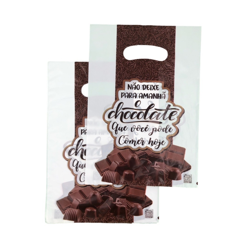 50 Sacolas Boca de Palhaço 0,8 Não Deixe Para Amanhã o Chocolate que voce pode comer hoje