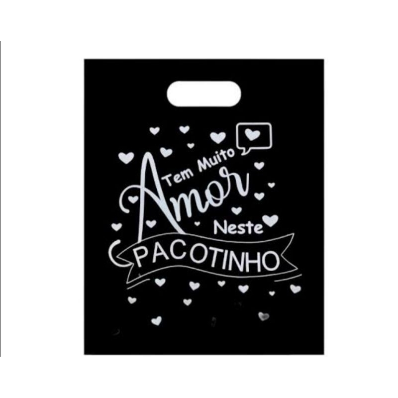 50 sacolas boca vasada com frases nesse pacotinho prata 30x40