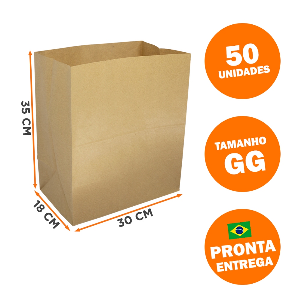 | 50 Sacos De Papel Kraft 35 x 30 x 18 cm Tamanho GG Delivery Hamburg... este produto | R$ 55,10 | 5% | 5.0/5 | 6 |