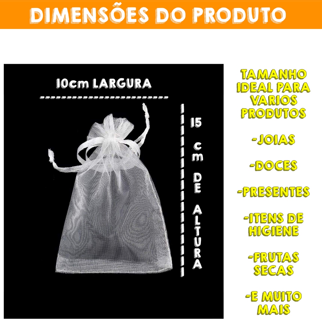 Os Melhores Saquinhos de Organza você só vai encontrar aqui! Descrição Confeccionados em tecido Organza Premium Medidas: 10x15 Sendo: 10cm de Largura 15cm de Altura Por se tratar de um produto artesanal, pode haver variação na medida, para mais e para menos. Acompanha fita de cetim na cor do saquinho (Branco) Costura reforçada, garantindo durabilidade. Cada pacote contém: 50 unidades do Saquinho Organza com fita de cetim. Produto a Pronta Entrega Envio Super Rápido Emitimos Nota Fiscal