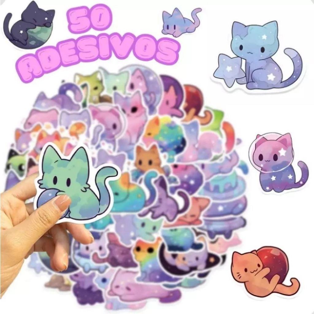 50 Stickers Gatinhos Estilo Galáxia | Adesivos para Kindle, Planner, Journal e Scrapbook