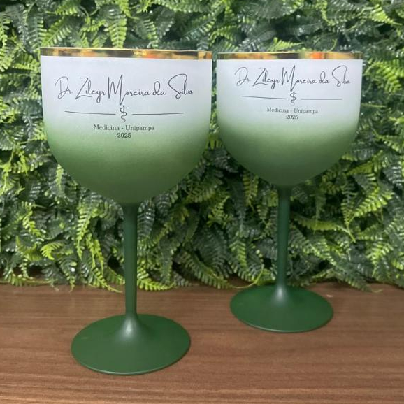 50 Taças Gin 450ml Degradê com borda metalizada Personalizadas em 1 lado