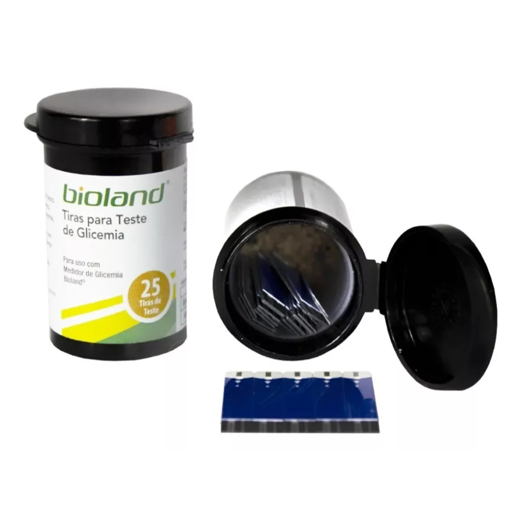 ATENÇÃO!!!!!! NOME DAS TIRAS: BIOLAND G-423 APARELHO COMPATÍVEL: BIOLAND G-500 / G425-3 - Enzima de alta precisão (resultado super preciso) - Qualquer área da tira pode ser tocado, não alterando o resultado do teste - Não precisa de nenhum código - Diagnóstico in vitro - Validade longa das tiras - tiaras de glicemia de alta precisão As Tiras para medir Glicose G-423S da BIOLAND é destinada para medição de glicose em conjunto com o aparelho Bioland G-500. Com uma enzima de alta precisão, esta fita não necessita codificação (antigo chip) e possui um exclusivo indicador de oxidação do pote (patente requerida). Sua reutilização é proibida. DÚVIDAS FREQUENTES: As tiras funcionam em outro aparelho? Não, funcionam apenas no aparelho Bioland G-500 As tiras precisam e codificação? Não Registro 10410130010 Autorização 1041013 Processo 25351.169938/2006-98Autorização 1041013 Processo 25351.169938/2006-98.