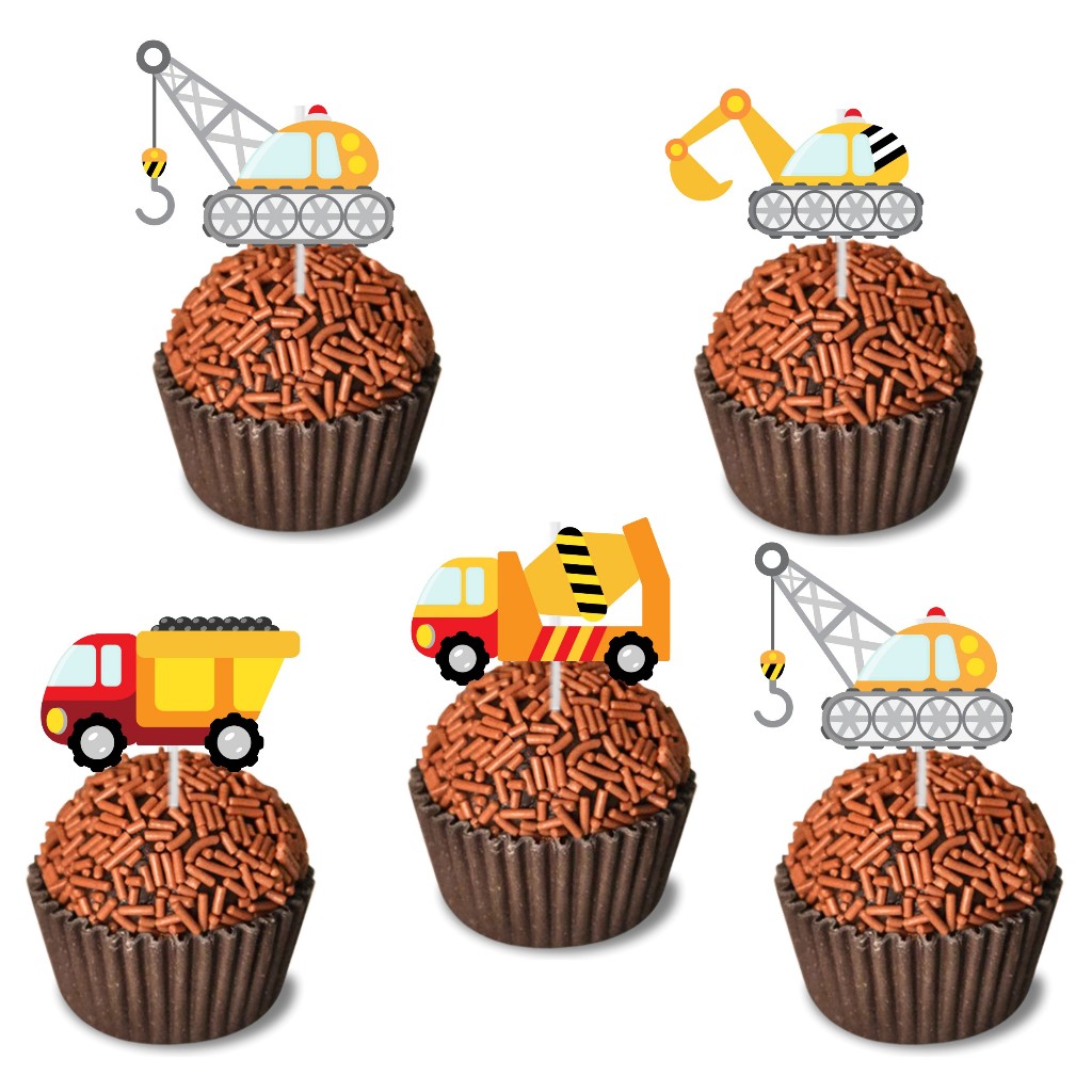 50 Toppers Docinhos Doces Festa Aniversário Construção Máquinas