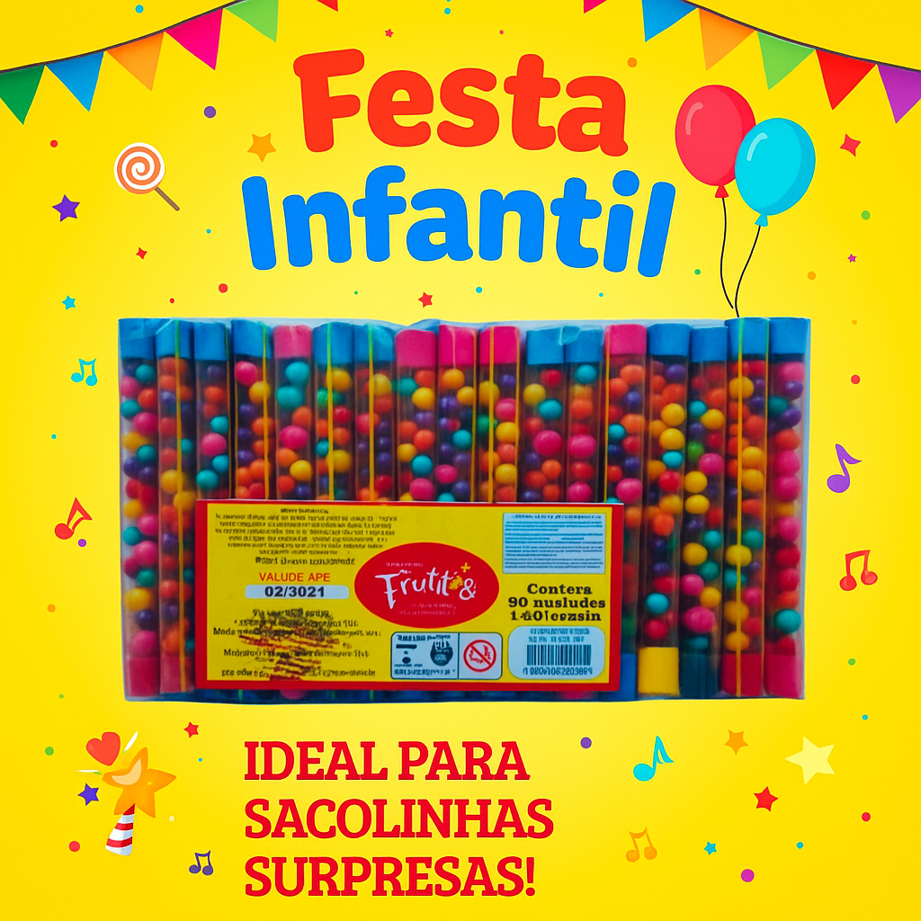 50 Tubetes Frutitos balinhas doces Crocantes – Lembrancinha Festa Infantil