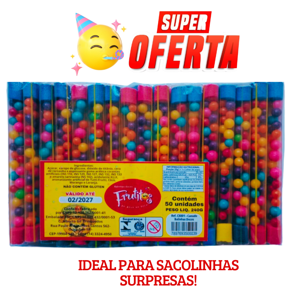 50 Tubinhos Balinhas Doces Frutitos - Lembrancinhas Festa Aniversário - Eventos escolares - Anos 80