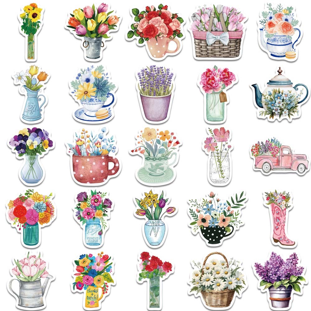 50 Unid . Autocolantes Flores Graffiti Cartoon Skateboard À Prova D'água Bagagem Esportiva Para Carros De Bricolagem Decalque
