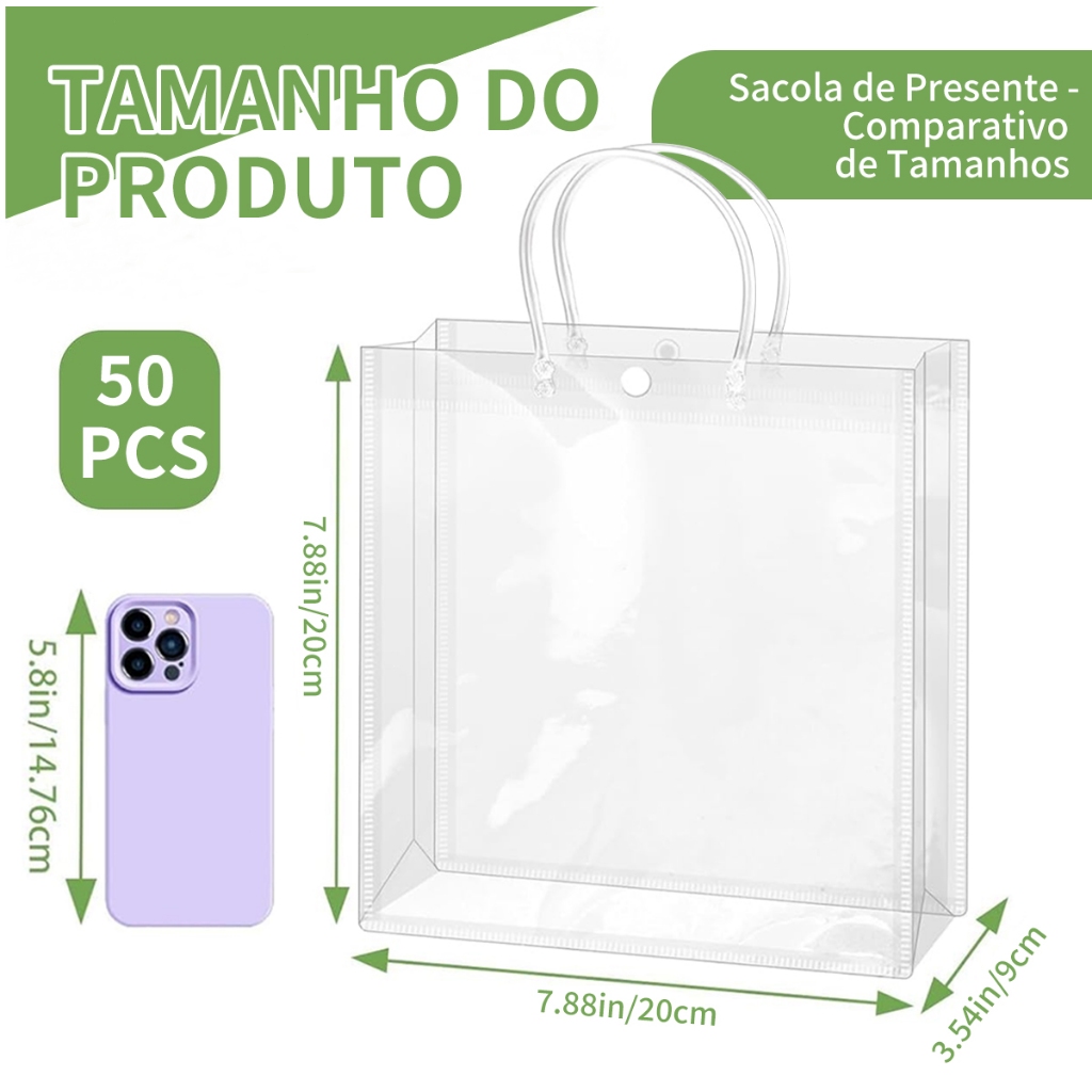 | 50 Unidades 20*20*9cm Reutilize Sacos De Presente Plástico Pvc Reut... este produto | R$ 149,00 | 50% | 5.0/5 | 103 |