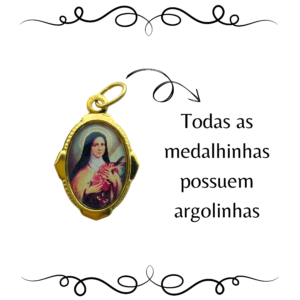 Traga proteção e fé para o seu dia a dia com as lindas medalhinhas de Santa Teresinha! Perfeitas para presentear amigos e familiares ou para usar em momentos especiais. Características do Produto: - Design Delicado: Cada medalhinha apresenta um design detalhado e encantador, ideal para quem busca um símbolo de fé e devoção. - Material de Qualidade: Feitas de alumínio com imagem resinada, as medalhinhas são resistentes e mantêm seu brilho por muito mais tempo. - Versatilidade: Perfeitas para serem usadas como pingentes, lembrancinhas em eventos religiosos ou até mesmo como um toque especial em artesanato. - Todas as medalhinhas possuem argolinha. - Imagem nítida e centralizada. - Feitas artesanalmente com muito capricho e carinho. Por que escolher nossas medalhinhas? Além de serem um lindo acessório, elas são uma forma de expressar sua fé e carinho. Com um preço acessível, você pode ter a certeza de que está adquirindo um produto de qualidade que tocará o coração de quem receber. Não perca essa oportunidade! Adquira já o seu conjunto de medalhinhas e leve um pouco mais de amor e proteção para a sua vida e a de quem você ama! 100% artesanal Produzimos medalhas de outros santos. Consulte-nos. Conheça nossos outros produtos. Largura: 1.50 cm Comprimento: 2.00 cm