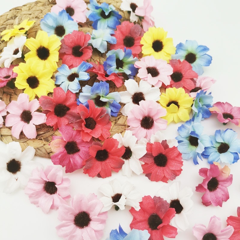 50 Unidades/Pacote 4cm Margarida Multicolorido Flor Cabeça Artificial Para Festa De Noivado De Casamento Decoração De Ca